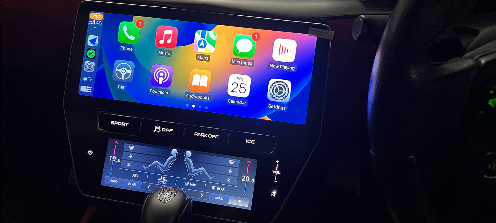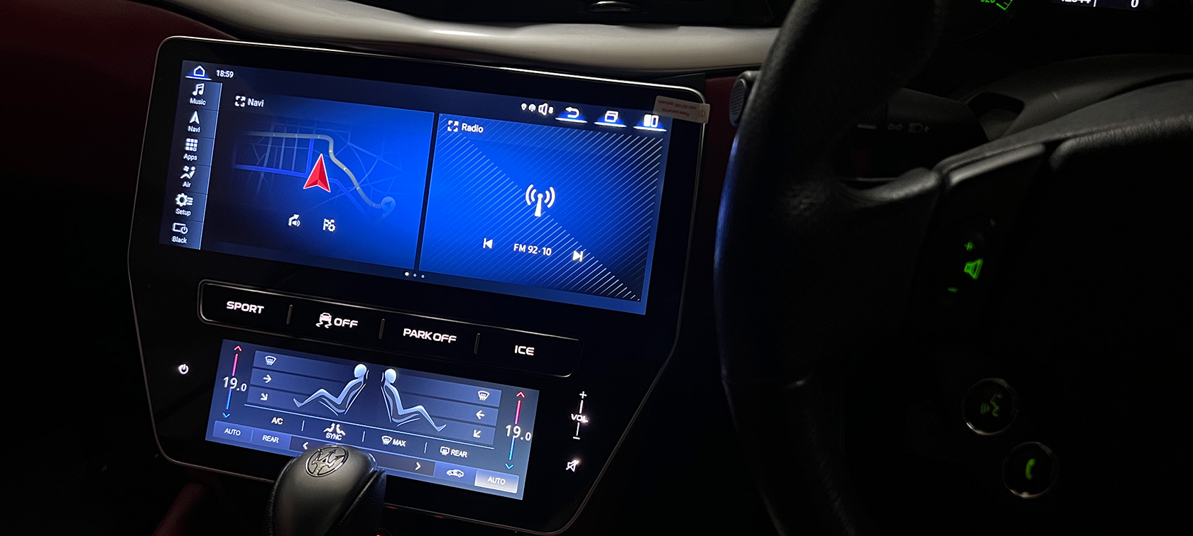 T“MASERATI GRANTURISMO 2024 Style Dual Screen CarPlay Head-Unit Upgrade for Maserati GranTurismo & Quattroporte.
